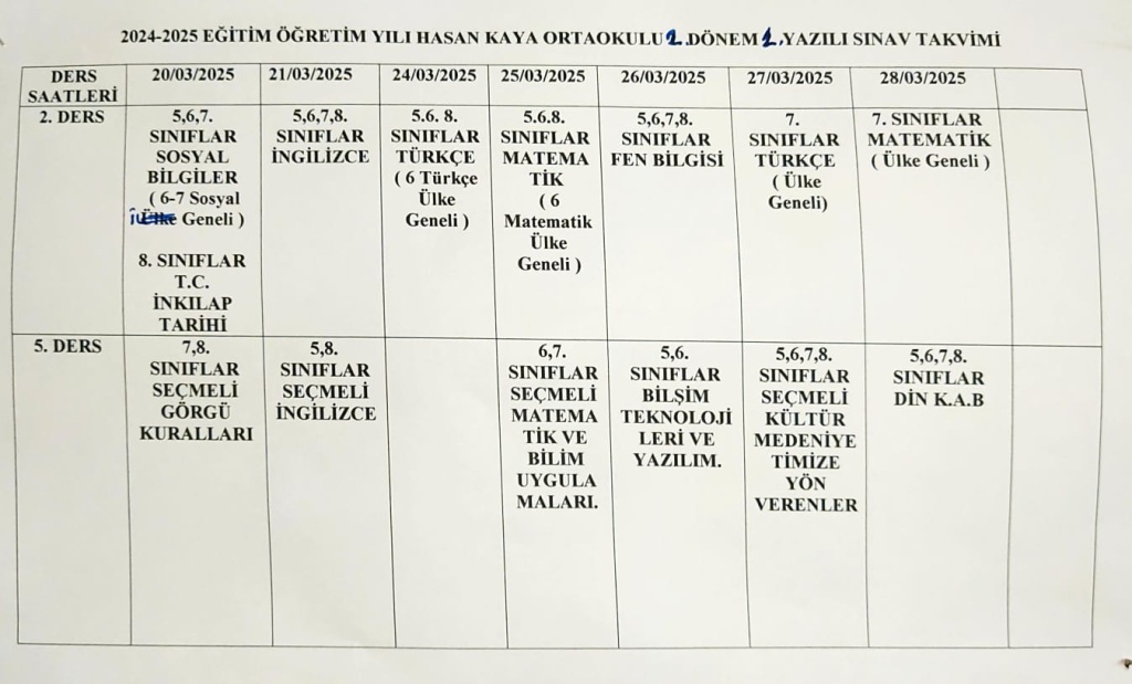 2024/2025 Eğitim Öğretim Yılı 2. Dönem 1. Ortak Sınav Tarihleri